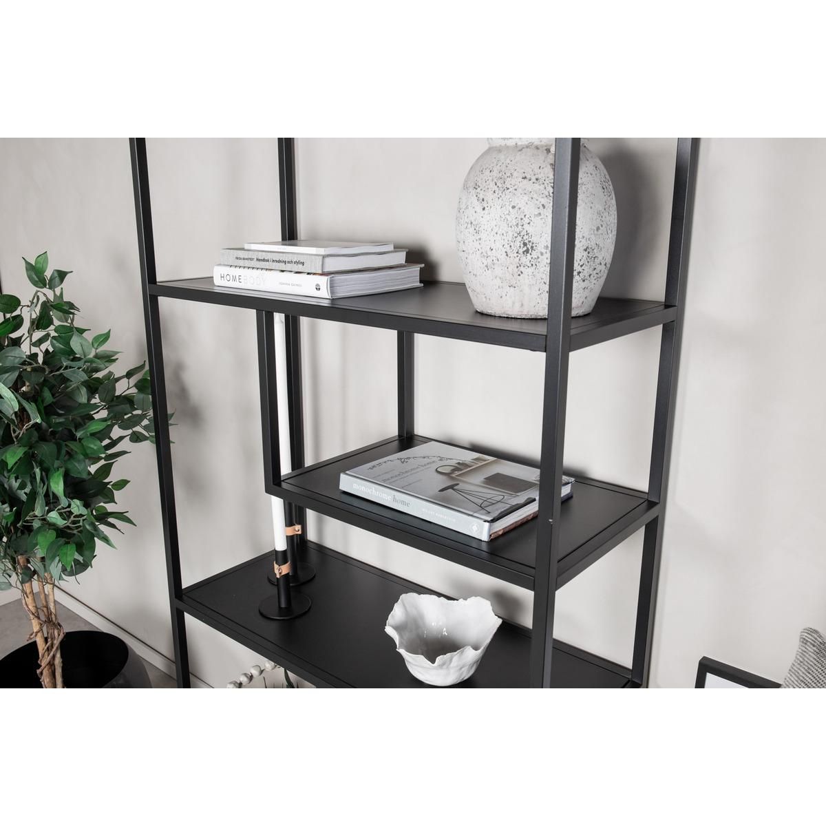Dit wandrek is gemaakt van hoogwaardig materiaal en heeft een elegante zwarte kleur. Met een afmeting van 85 x 188 cm biedt het wandrek voldoende ruimte om uw favoriete decoraties of boeken op een stijlvolle manier te presenteren.