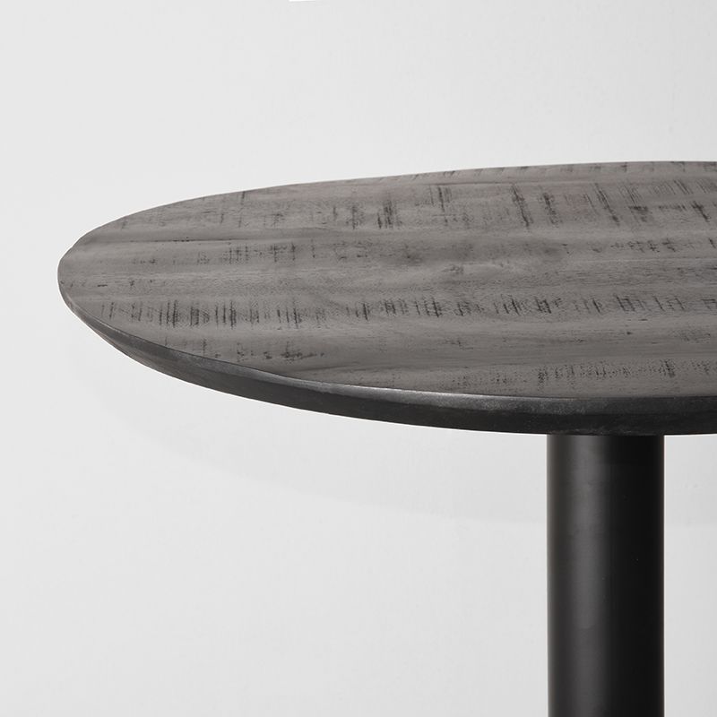 Met een diameter van 70 cm en een hoogte van 108 cm biedt deze bartafel de perfecte ruimte voor gezellig samenzijn in horecaomgevingen. Het zwarte mangohouten blad en de onregelmatige rand geven een industriële uitstraling die moeiteloos past bij diverse interieurstijlen.