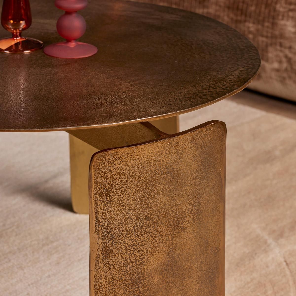 De ronde salontafel Darwin van Starfurn is een stijlvolle toevoeging aan elke woonkamer. Gemaakt van aluminium, het ronde tafelblad is afgewerkt met een gouden finish, wat een luxe uitstraling geeft.