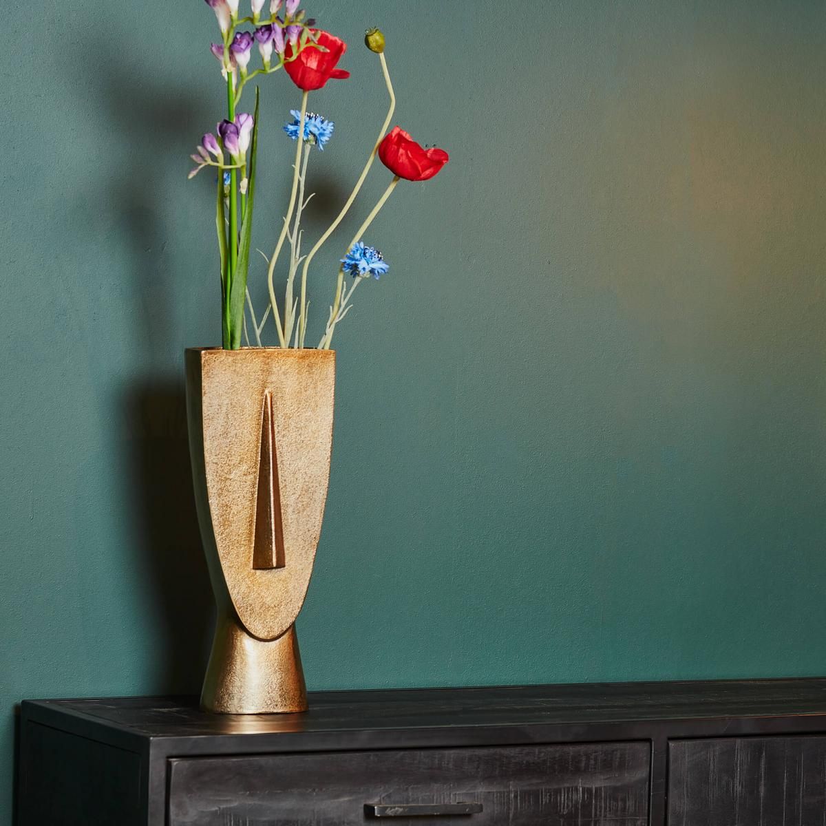 De Vaas Fin Antiek goud Large is een stijlvolle toevoeging aan elke woonruimte. Gemaakt van aluminium, is deze vaas afgewerkt met een antiek gouden finish.